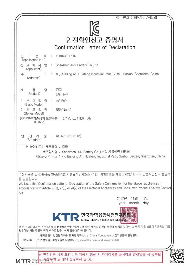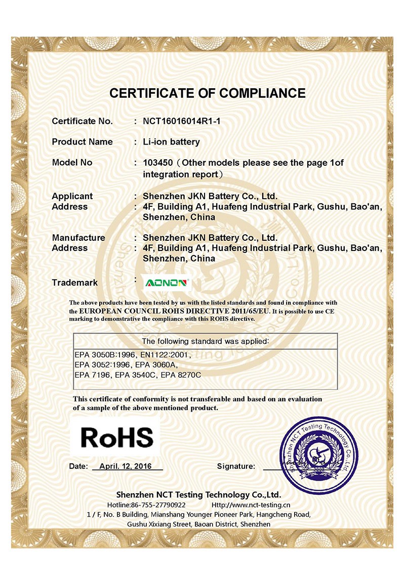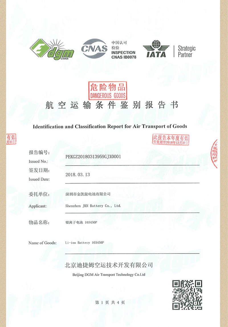 金凱能致力于研發制造高品質的定制化鋰電池組,堅持以優異的產品、可靠的質量、高效的服務,滿足或超越客戶的需求,樹立金凱能品牌形象。金凱能為保證產品質量,引進完善的電池檢測設備,采用現代化管理體制,誠信經營,發展創新。 同時與SGS、北測等檢測機構保持良好合作確保產品滿足相關認證和使用需求。